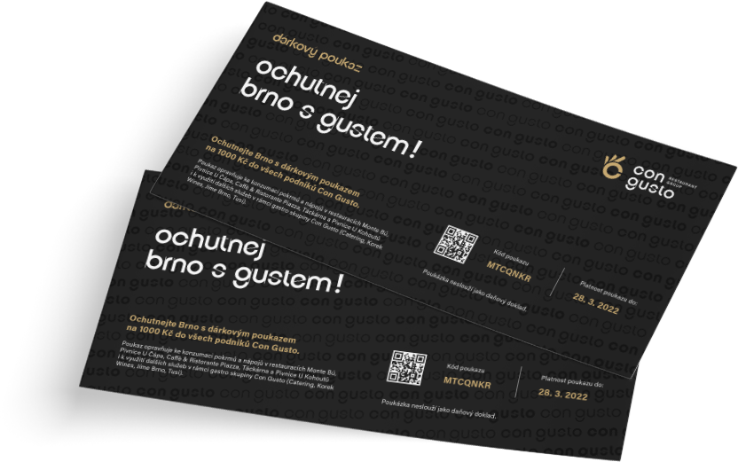 Dárkový poukaz uplatníte ve všech podnicích naší sítě. Obdarovaný si tak vybere styl podniku dle svého gusta. Máte tak jistotu, že s tímto dárkem nešlápnete vedle.